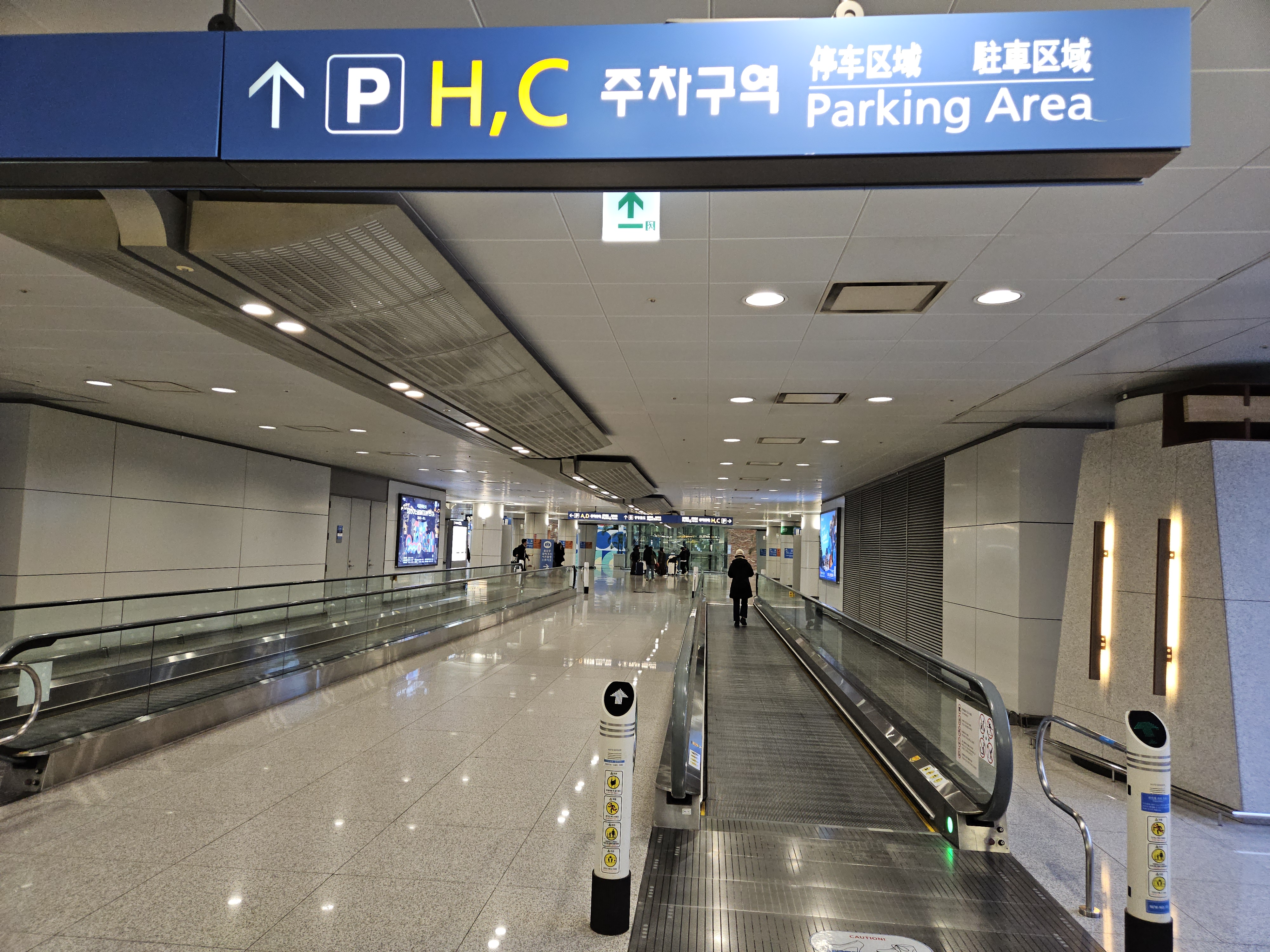 교통센터 내부로 들어가면 **무빙워크(패스트레일)**가 설치되어 있어
